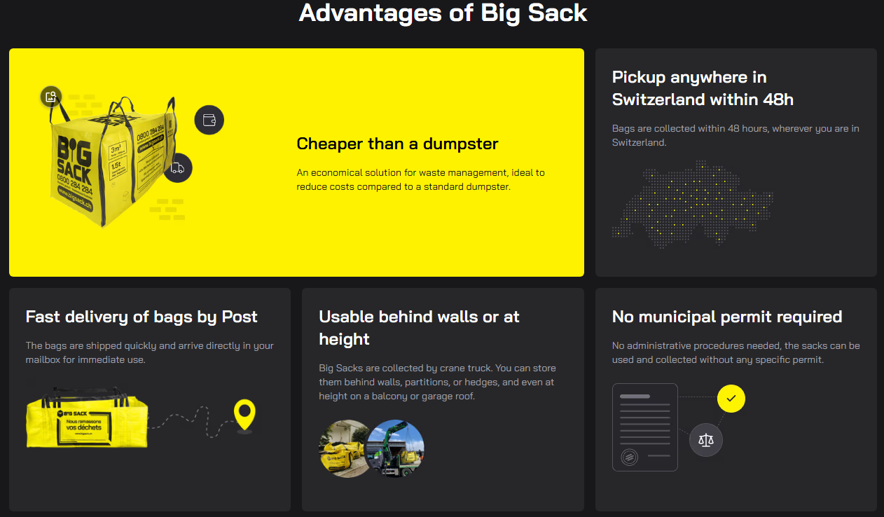 Big Sack offers a collection service throughout Switzerland. Thanks to our network of partners, we are able to collect your Big Sack efficiently and quickly.